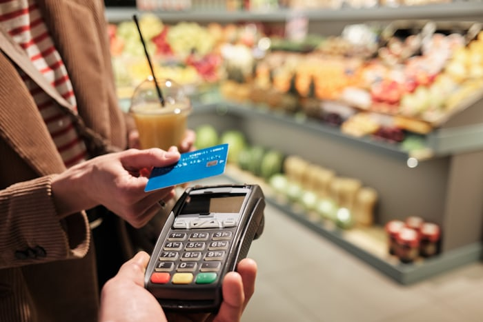 - 전통시장에서 신용카드를 사용하여 결제합니다.